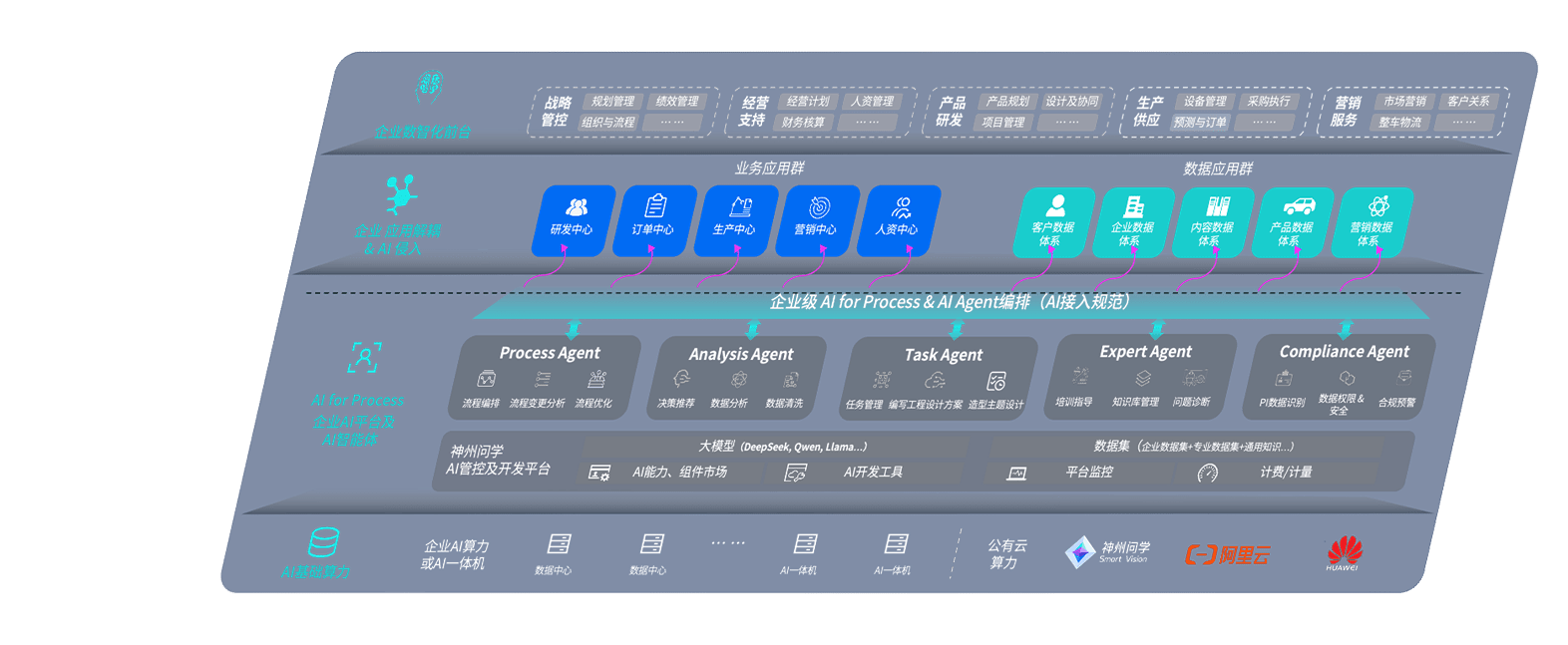 地球人问学智车解决方案是一套基于AI技术的汽车行业智能化系统,,,覆盖从底层算力到顶层AI应用的全栈方案。。方案由算力层、、、、模型层和应用层组成:算力层,,,方案支持多种一体机配置,,,,具备云端灵活部署、、、多云适配以及动态优化计算资源的能力;模型层,,地球人问学平台版提供了企业级AI应用一站式构建与管理平台,,,,支持基于后训练强化技术的汽车企业专属模型的训练、、、评测和运营;应用层,,地球人问学DeepSeek版提供包括超级员工、、智能招采、、智能营销、、、智能客服、、AI for BI等一系列解决方案,,可助力汽车行业实现数字化转型,,让管理更智能、、响应更敏捷。。。。