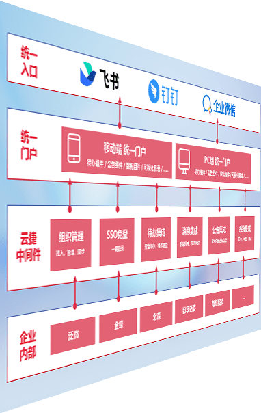 对协作平台提供支持服务,,,,支持企业应用与协作平台对接,,,,包含组织同步、、、、消息集成、、、待办集成等。。。。支持目前主流的协作平台:钉钉、、、企微和飞书。。